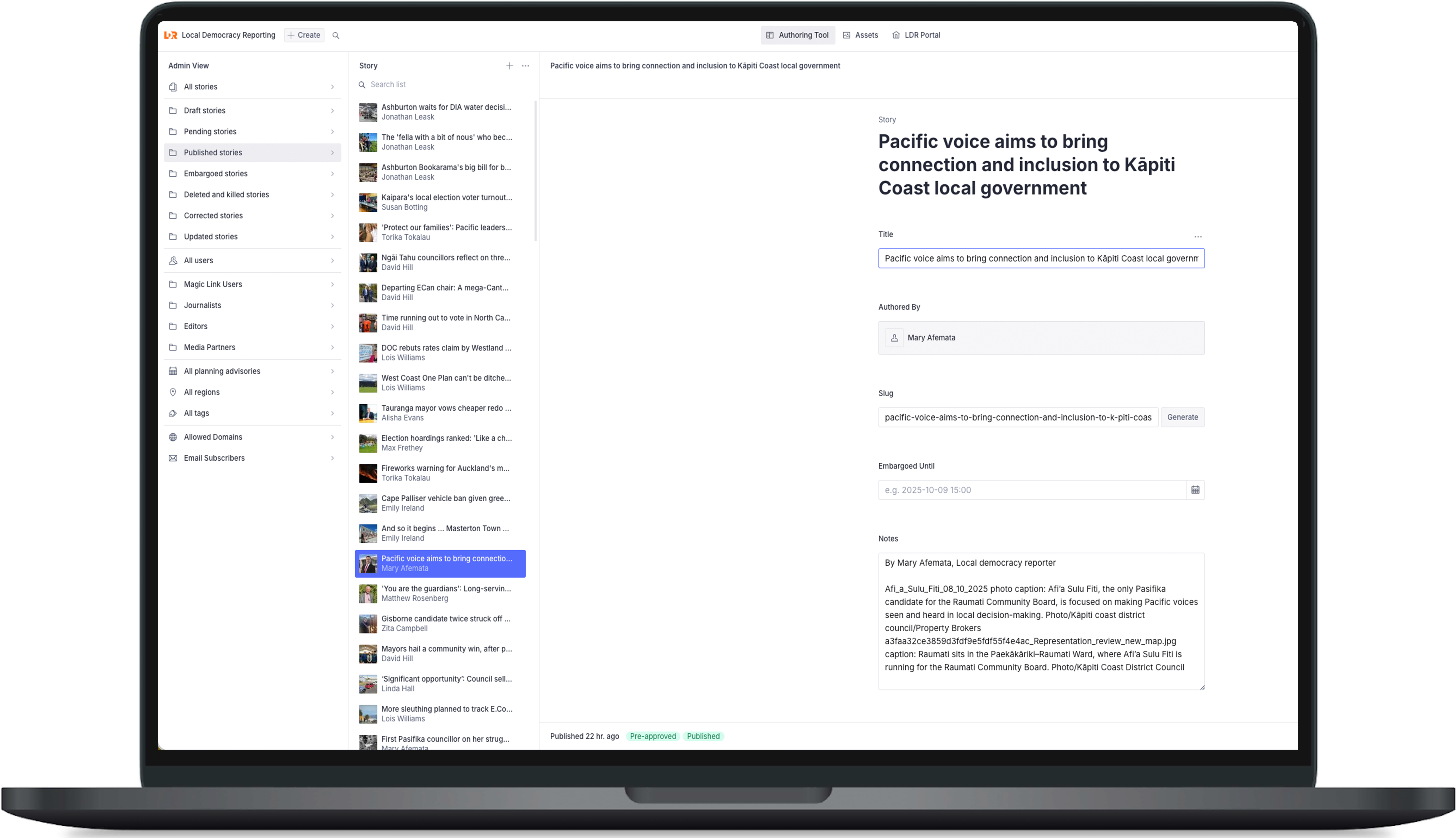 The LDR programme had relied on a WordPress-based authoring platform for many years. The system had served reporters, editors, and media partners well, providing a familiar environment for creating and publishing content across Aotearoa. It supported daily workflows and enabled the programme to deliver high-quality, public-interest journalism to communities across the motu.